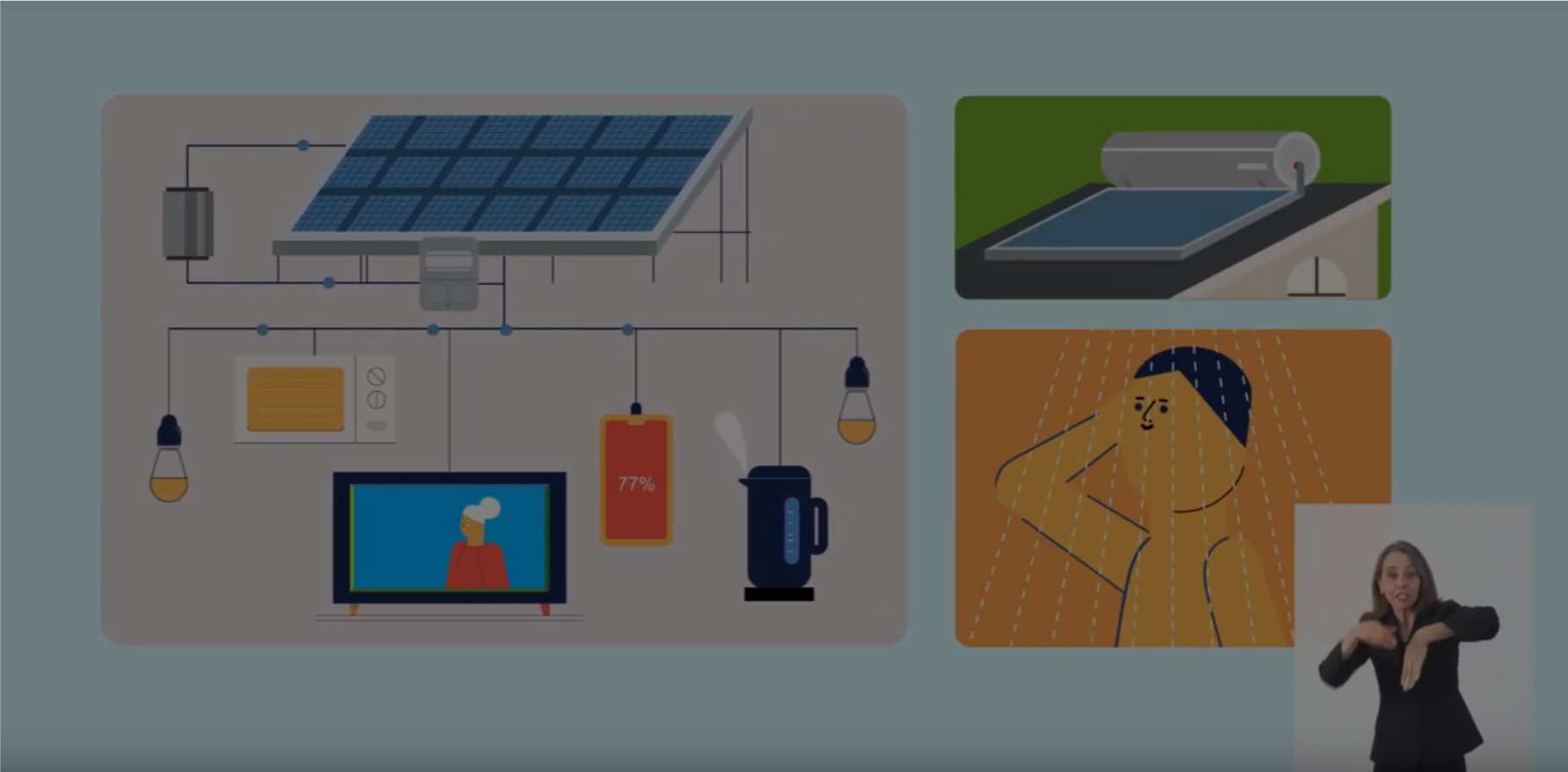 Es una fuente de energía renovable que aprovecha la radiación o calor del sol y permite a los hogares generar electricidad a través de sistemas solares fotovoltaicos o calentar agua con sistemas solares térmicos.